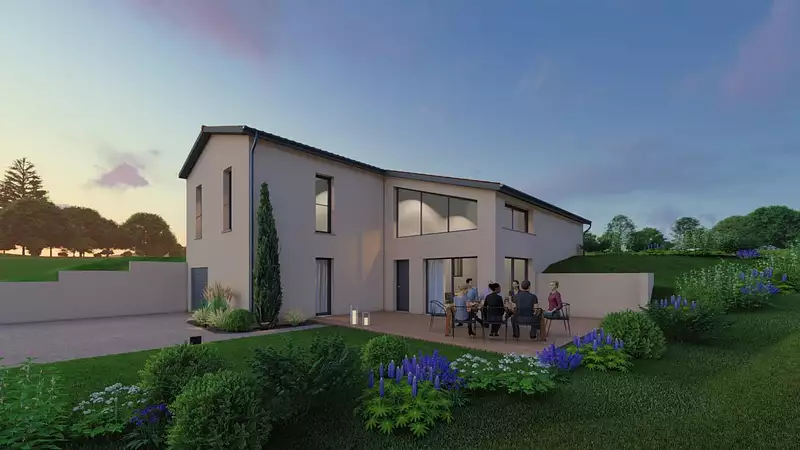Le modèle est totalement adaptable à vos envies et besoins et personnalisable grâce à de nombreuses options de finition. Nous consulter pour plus d'informations. Le prix affiché comprend le coût du terrain et de la construction hors frais de notaire et taxes. Les annonces de terrains constructibles sont sélectionnées auprès de nos partenaires fonciers selon disponibilités et autorisation de publicité en vue de construire une maison neuve avec un Contrat de Construction de Maison Individuelle dans le cadre de la loi du 19/12/1990. Ces derniers sont soit des professionnels dûment habilités à la transaction immobilière, soit des particuliers. Les terrains sélectionnés sont disponibles à la date de la première parution de l'annonce. En aucun cas Maisons ARLOGIS ou ses collaborateurs ne sont propriétaires des terrains, ne jouent un rôle d'intermédiation ou de négociation sur la transaction et ne participent à la vente. Prix indiqués par nos partenaires fonciers. Visuel d'illustration. Le modèle est totalement adaptable à vos envies et besoins et personnalisable grâce à de nombreuses options de finition. Nous consulter pour plus d’informations. Le prix affiché comprend le coût du terrain et de la construction hors frais de notaire et taxes. Les annonces de terrains constructibles sont sélectionnées auprès de nos partenaires fonciers selon disponibilités et autorisation de publicité en vue de construire une maison neuve avec un Contrat de Construction de Maison Individuelle dans le cadre de la loi du 19/12/1990. Ces derniers sont soit des professionnels dûment habilités à la transaction immobilière, soit des particuliers. Les terrains sélectionnés sont disponibles à la date de la première parution de l’annonce. En aucun cas Maisons ARLOGIS ou ses collaborateurs ne sont propriétaires des terrains, ne jouent un rôle d’intermédiation ou de négociation sur la transaction et ne participent à la vente. Prix indiqués par nos partenaires fonciers.