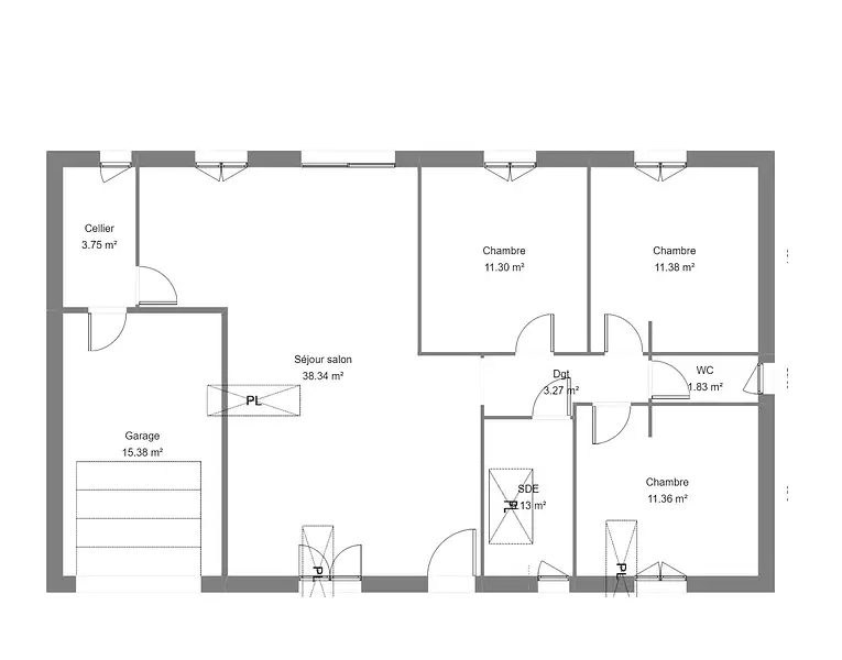 À l’intérieur, c’est également le bonheur. Un spacieux espace de vie et sa cuisine semi-ouverte. Un coin nuit avec salle de bains et trois chambres. La maison dispose d'une surface de 90 m², de 3 chambres et de 4 pièces. Les caractéristiques principales incluent un toit à 2 pans ou 4 pans, un porche accueillant, et un garage intégré.