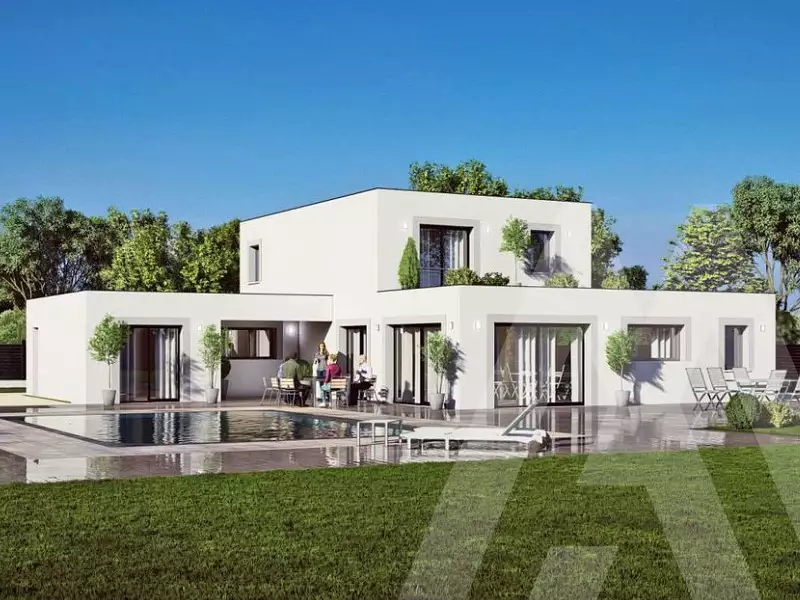 ****** Visuel d'illustration. Le modèle est totalement adaptable à vos envies et besoins et personnalisable grâce à de nombreuses options de finition. Nous consulter pour plus d’informations. Le prix affiché comprend le coût du terrain et de la construction hors frais de notaire et taxes. Les annonces de terrains constructibles sont sélectionnées auprès de nos partenaires fonciers selon disponibilités et autorisation de publicité en vue de construire une maison neuve avec un Contrat de Construction de Maison Individuelle dans le cadre de la loi du 19/12/1990. Ces derniers sont soit des professionnels dûment habilités à la transaction immobilière, soit des particuliers. Les terrains sélectionnés sont disponibles à la date de la première parution de l’annonce. En aucun cas Maisons ARLOGIS ou ses collaborateurs ne sont propriétaires des terrains, ne jouent un rôle d’intermédiation ou de négociation sur la transaction et ne participent à la vente. Prix indiqués par nos partenaires fonciers.