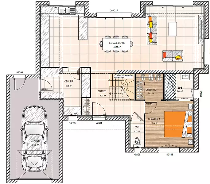 Proposée par MAISONS BERNARD JAMBERT – 6 pièces - 4 chambres - terrain 370 m²