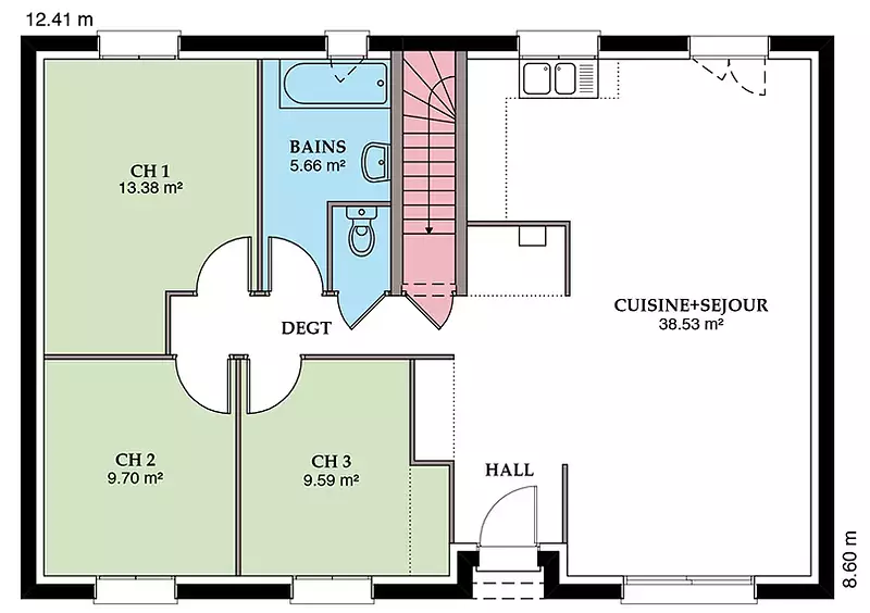 Ce modèle se compose de 4 pièces lumineuses et spacieuses, dont 4 chambres confortables, offrant ainsi un cadre de vie idéal pour une famille. Chaque espace a été pensé pour maximiser le confort et la fonctionnalité, tout en respectant les critères de la norme RE2020. Vous bénéficierez d'un intérieur à la fois moderne et chaleureux, avec la possibilité de personnaliser les finitions selon vos goûts et vos besoins.