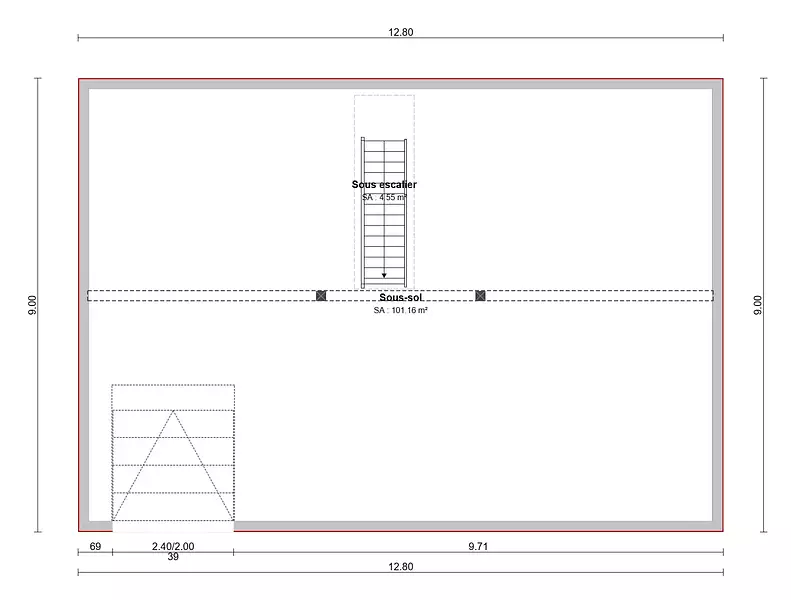 Ce projet propose une maison individuelle de 90 m² habitables, implantée sur un sous-sol complet de 100 m², offrant de nombreuses possibilités d’aménagement et de stockage.