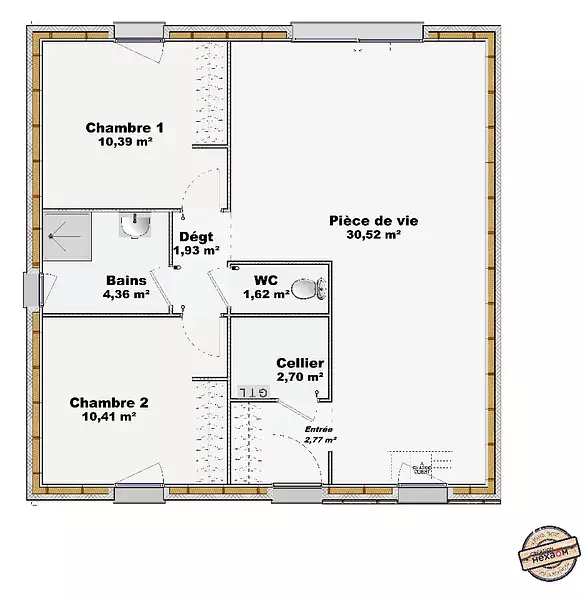 Proposée par MAISONS FRANCE CONFORT – 3 pièces - 2 chambres - terrain 445 m²