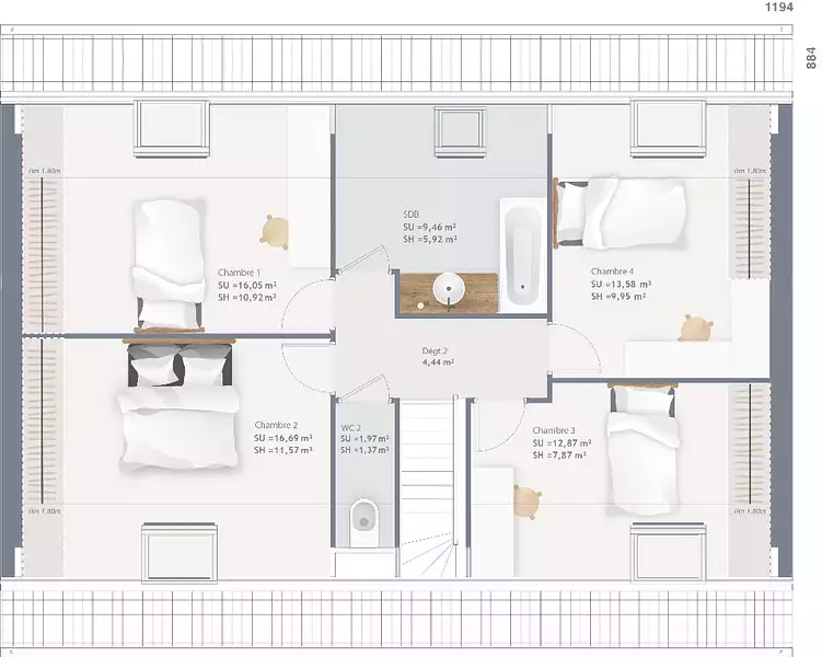 Proposée par MAISONS FRANCE CONFORT – 6 pièces - 4 chambres - terrain 506 m²