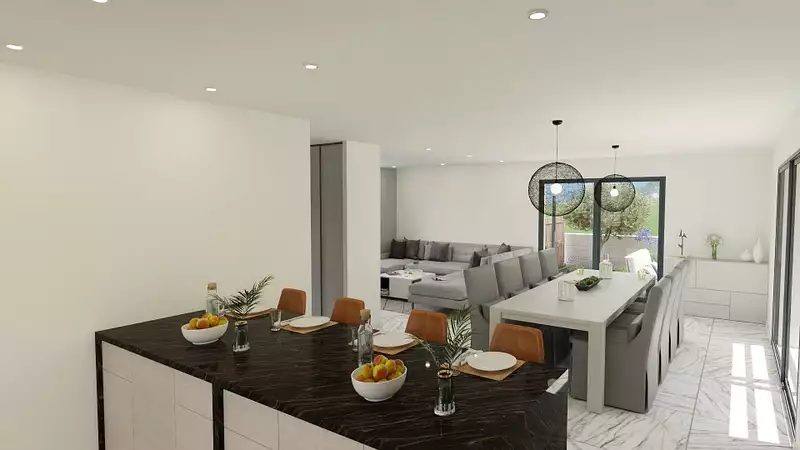 Terrain proposé par un partenaire foncier selon disponibilités et autorisation de publicité au prix de 159 000 €. Hors droit d'enregistrement et frais de notaire. Maison proposée, avec un contrat de construction de maison individuelle, dans le cadre de la loi du 19/12/1990, au prix de 351 000 € (Hors branchements et raccordements, papiers peints, peintures, revêtement de sol dans les chambres, qui sont chiffrés dans les travaux qui restent à charge du client. Tarif modifiable sans préavis). Étiquette énergie : A. Différents modèles disponibles pour ce terrain. Assurances et garanties du constructeur comprises (RC professionnelle, décennale, dommage ouvrage).