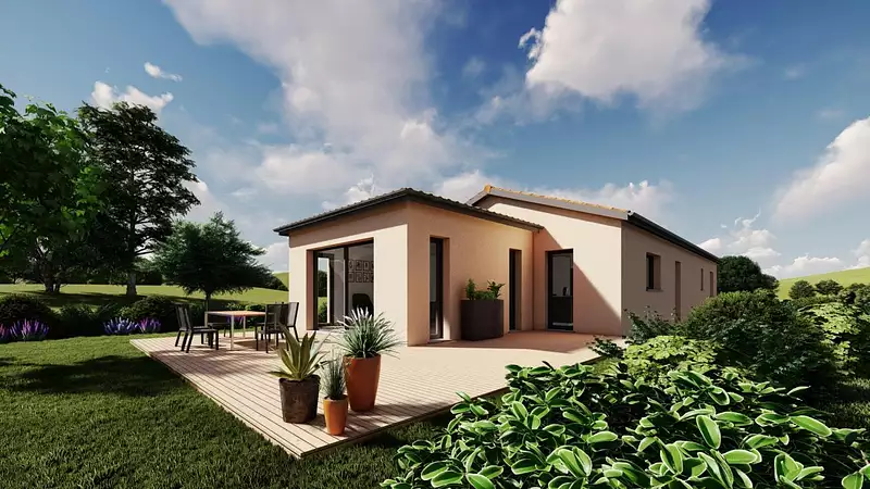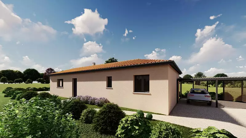 Terrain en accord avec notre partenaire foncier, sous réserve de disponibilité. Prix et visuels non contractuels. Projet conforme à la RE2020. Visuel d'illustration. Le modèle est totalement adaptable à vos envies et besoins et personnalisable grâce à de nombreuses options de finition. Nous consulter pour plus d’informations. Le prix affiché comprend le coût du terrain et de la construction hors frais de notaire et taxes. Les annonces de terrains constructibles sont sélectionnées auprès de nos partenaires fonciers selon disponibilités et autorisation de publicité en vue de construire une maison neuve avec un Contrat de Construction de Maison Individuelle dans le cadre de la loi du 19/12/1990. Ces derniers sont soit des professionnels dûment habilités à la transaction immobilière, soit des particuliers. Les terrains sélectionnés sont disponibles à la date de la première parution de l’annonce. En aucun cas Maisons ARLOGIS ou ses collaborateurs ne sont propriétaires des terrains, ne jouent un rôle d’intermédiation ou de négociation sur la transaction et ne participent à la vente. Prix indiqués par nos partenaires fonciers.