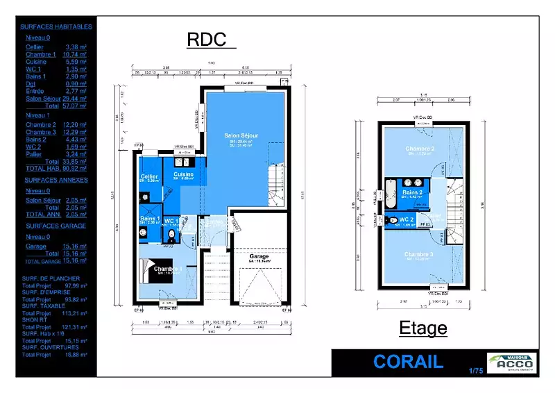 Proposée par MAISONS ACCO – 4 pièces - 3 chambres - terrain 222 m²