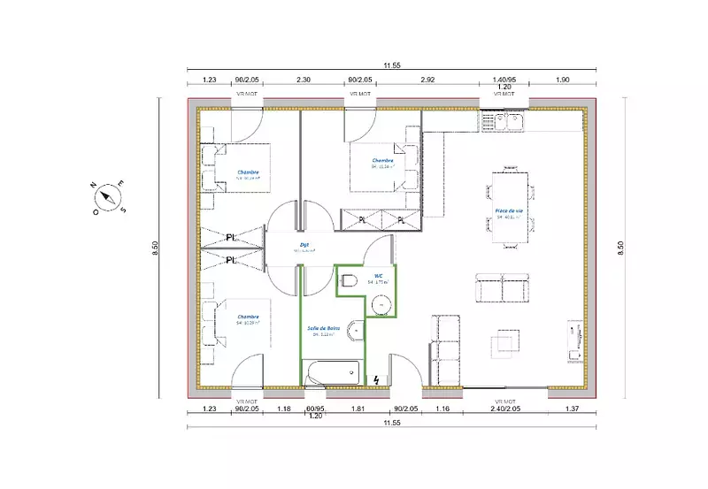 Proposée par MAISONS FRANCE CONFORT – 5 pièces - 3 chambres - terrain 709 m²