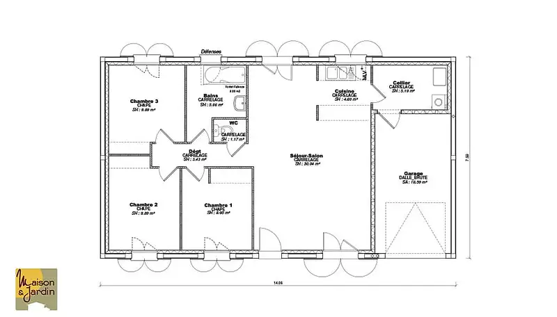 Proposée par MAISON ET JARDIN – 4 pièces - 3 chambres - terrain 900 m²