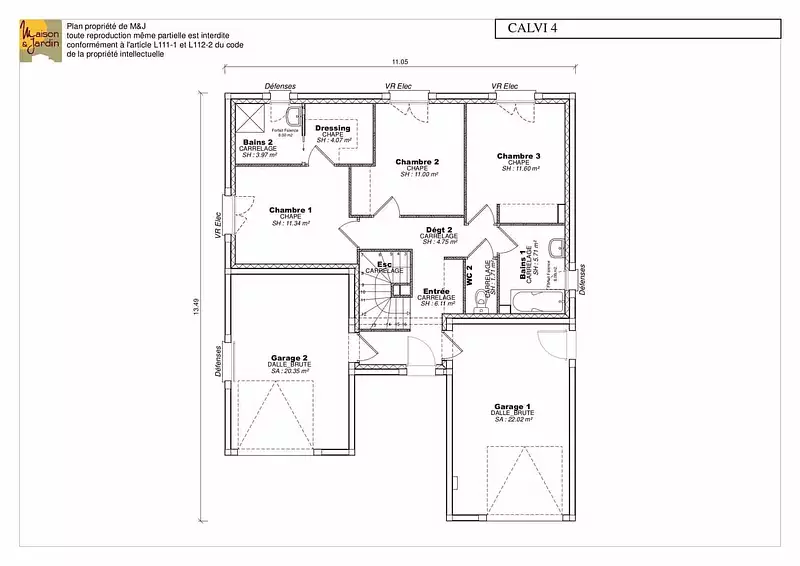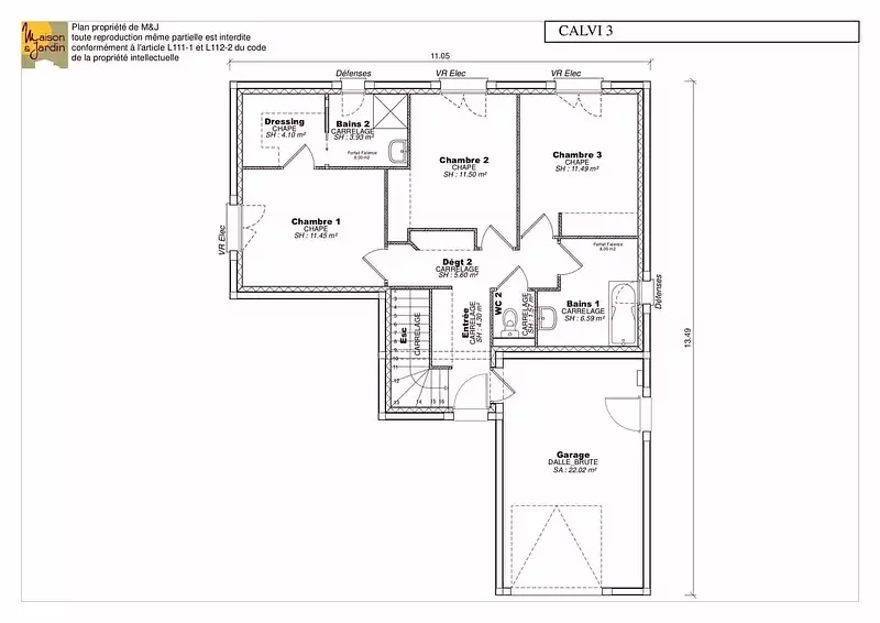 Proposée par MAISON ET JARDIN – 4 pièces - 3 chambres - terrain 446 m²