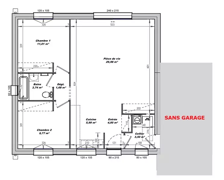 Proposée par LMP CONSTRUCTEUR – 2 pièces - 2 chambres - terrain 250 m²