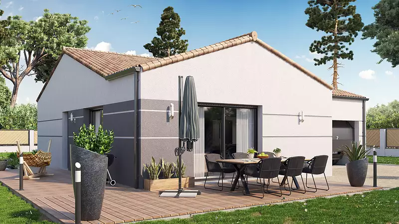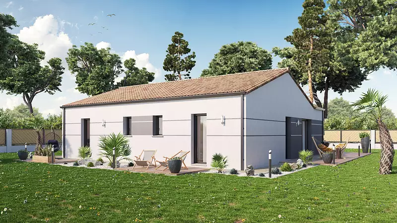 Une maison de plain-pied entièrement pensée pour l’accessibilité, sans compromis sur le confort ni sur le style. Circulations fluides, pièces spacieuses, seuils de porte abaissés, et volumes optimisés : ici, chaque espace est conçu pour une accessibilité totale, en fauteuil comme à la marche. La pièce de vie ouverte et lumineuse, les 3 chambres confortables, la salle d’eau accessible, le cellier et le garage attenant offrent un cadre de vie autonome, pratique et sécurisé. Ce modèle s’adresse aux personnes à mobilité réduite souhaitant vivre pleinement chez elles, dans une maison fonctionnelle, évolutive et personnalisable, adaptée à toutes les étapes de la vie. Pour un confort optimal et conforme à la RE2025, cette maison dispose d’une PAC avec plancher chauffant et volets roulants électriques. À noter : Le prix indiqué exclut les revêtements de sol des chambres, la cuisine aménagée, la peinture, la décoration, les frais de notaire et l’assurance dommages ouvrage.