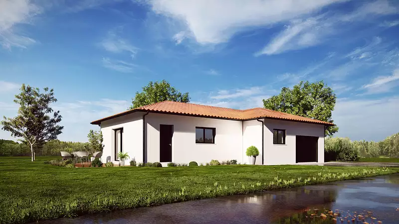 > Visuel d'illustration. Le modèle est totalement adaptable à vos envies et besoins et personnalisable grâce à de nombreuses options de finition. Nous consulter pour plus d’informations. Le prix affiché comprend le coût du terrain et de la construction hors frais de notaire et taxes. Les annonces de terrains constructibles sont sélectionnées auprès de nos partenaires fonciers selon disponibilités et autorisation de publicité en vue de construire une maison neuve avec un Contrat de Construction de Maison Individuelle dans le cadre de la loi du 19/12/1990. Ces derniers sont soit des professionnels dûment habilités à la transaction immobilière, soit des particuliers. Les terrains sélectionnés sont disponibles à la date de la première parution de l’annonce. En aucun cas Maisons ARLOGIS ou ses collaborateurs ne sont propriétaires des terrains, ne jouent un rôle d’intermédiation ou de négociation sur la transaction et ne participent à la vente. Prix indiqués par nos partenaires fonciers.