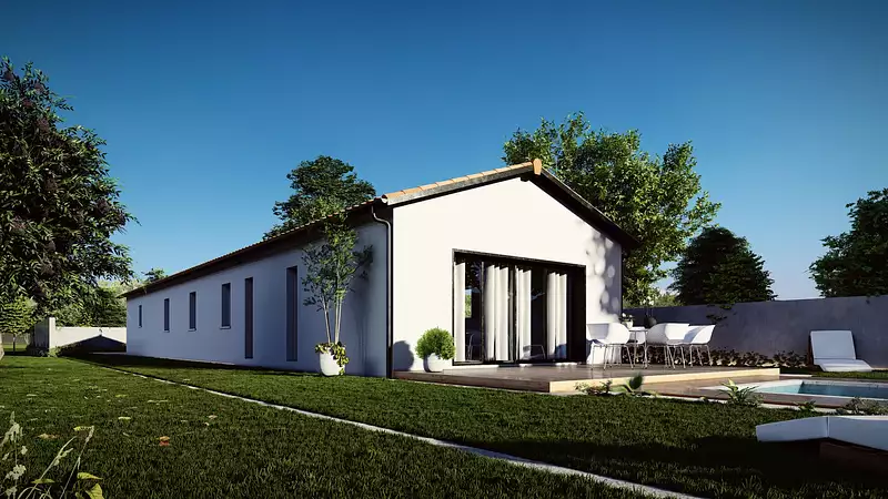 Le confort est également au rendez-vous grâce au chauffage par pompe à chaleur et à une distribution d'eau chaude individuelle, vous assurant un mode de vie moderne et économique. Cette maison, pensée pour répondre aux attentes d'une famille, offre des espaces extérieurs propices aux jeux et à la détente, le tout dans un cadre harmonieux. Ce projet représente une belle opportunité de construire votre futur dans un lieu accueillant et adapté aux besoins des enfants comme des parents. Visuel d'illustration. Le modèle est totalement adaptable à vos envies et besoins et personnalisable grâce à de nombreuses options de finition. Nous consulter pour plus d’informations. Le prix affiché comprend le coût du terrain et de la construction hors frais de notaire et taxes. Les annonces de terrains constructibles sont sélectionnées auprès de nos partenaires fonciers selon disponibilités et autorisation de publicité en vue de construire une maison neuve avec un Contrat de Construction de Maison Individuelle dans le cadre de la loi du 19/12/1990. Ces derniers sont soit des professionnels dûment habilités à la transaction immobilière, soit des particuliers. Les terrains sélectionnés sont disponibles à la date de la première parution de l’annonce. En aucun cas Maisons ARLOGIS ou ses collaborateurs ne sont propriétaires des terrains, ne jouent un rôle d’intermédiation ou de négociation sur la transaction et ne participent à la vente. Prix indiqués par nos partenaires fonciers.