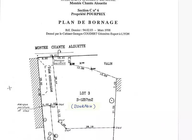 Le terrain n°3 fait 1257 m² et il est NON viabilisé.