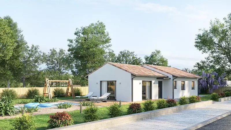 Nos architectes ont imaginé cette maison en L pour maximiser la luminosité et offrir des espaces de vie agréables et bien agencés. La Mareuil se compose de 4 pièces, dont 3 chambres, parfaites pour accueillir une famille. Le salon-séjour spacieux et lumineux, avec une cuisine ouverte, est idéal pour partager des moments conviviaux.