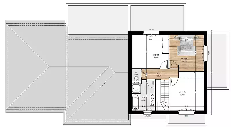 Proposée par MAISONS BERNARD JAMBERT – 6 pièces - 5 chambres - terrain 419 m²