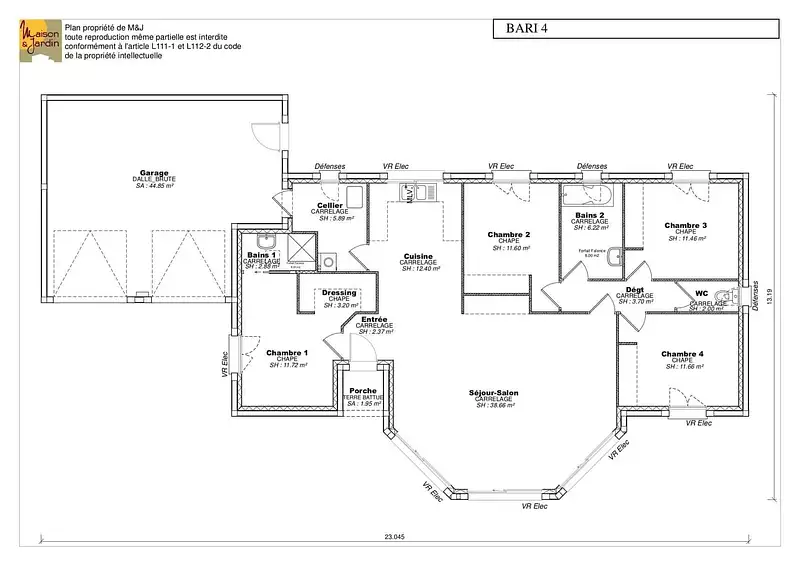 Proposée par MAISON ET JARDIN – 4 pièces - 3 chambres - terrain 1 050 m²