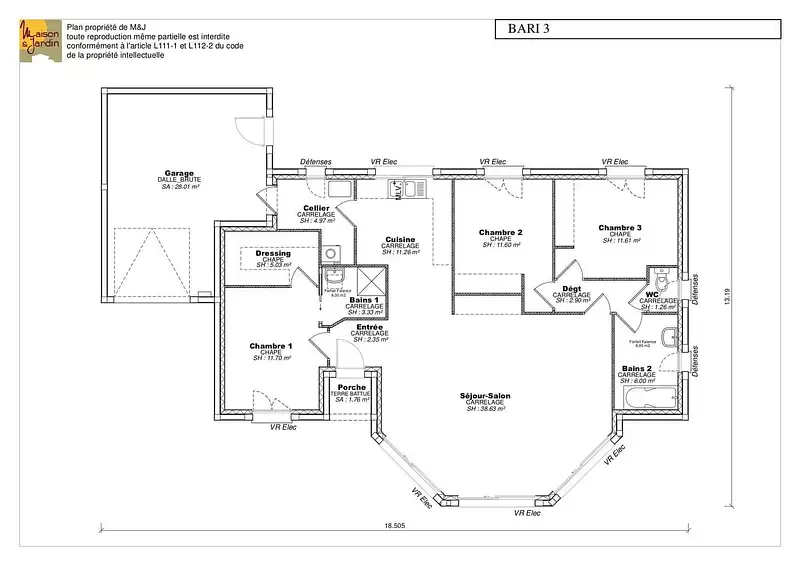 La Bari se distingue par sa suite parentale spacieuse, offrant intimité et confort aux parents. Cette pièce est complétée par une deuxième salle de bains, garantissant ainsi une fonctionnalité optimale pour toute la famille. Le garage intégré ajoute une commodité supplémentaire, facilitant le quotidien et offrant un espace de rangement ou de stationnement sécurisé pour votre véhicule.
