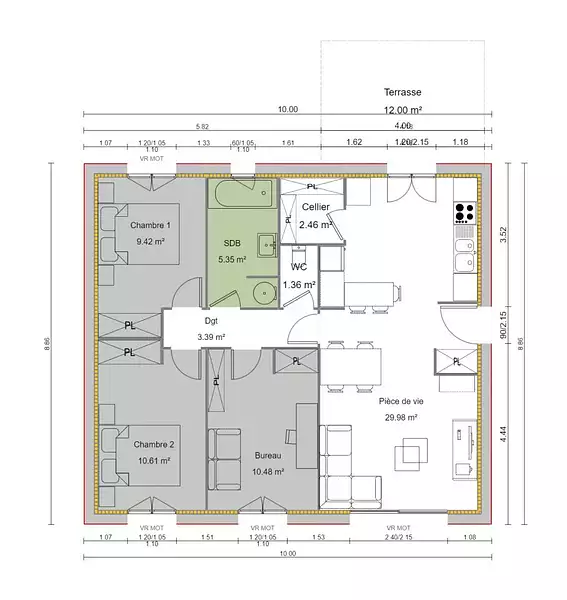 Proposée par MAISONS FRANCE CONFORT – 4 pièces - 2 chambres - terrain 1 266 m²