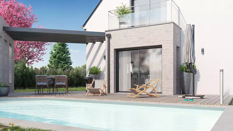 Un écrin de lumière à personnaliser ! Oubliez les compromis, ici chaque m² est pensé pour vous ! Un vaste espace de vie baigné de lumière, une circulation fluide et des volumes généreux à façonner selon vos envies. À l’étage, 2 grandes chambres et un dressing pour un confort absolu. Un garage et un cellier malin complètent cette maison à l’architecture élégante et contemporaine. Faites de ce projet le vôtre, imaginez-le à votre image !. Pour un confort optimal et conforme à la RE2025, cette maison dispose d’une PAC avec plancher chauffant, radiateurs à l’étage et volets roulants électriques. À noter : Le prix indiqué exclut les revêtements de sol des chambres, la cuisine aménagée, la peinture, la décoration, les raccordements, les frais de notaire et l’assurance dommages-ouvrage. (Piscine non contractuelle, non comprise dans le prix).