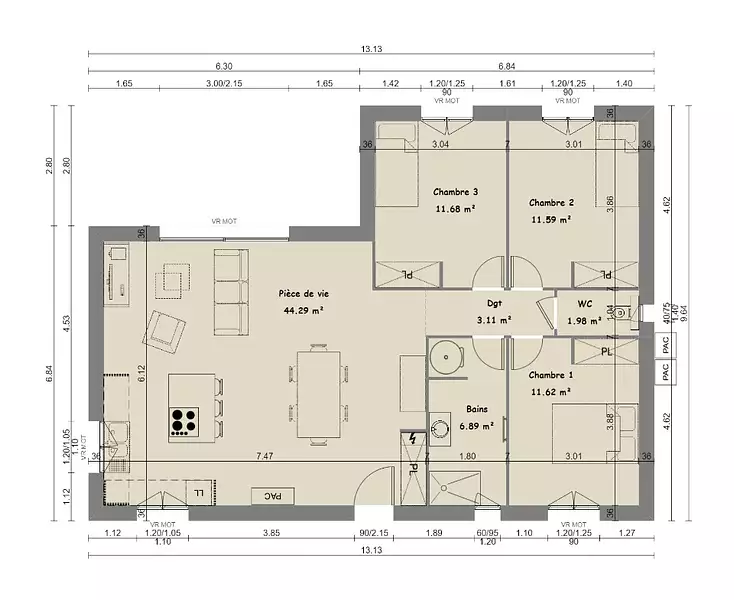 Proposée par MAISONS FRANCE CONFORT – 4 pièces - 3 chambres - terrain 2 300 m²