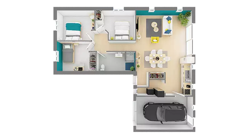 La Lucéenne est un très charmant pavillon de plain-pied en forme de L, qui a la particularité de vous offrir un confort optimal dans un espace raisonné. Ce modèle est parfait pour les primo-accédants ou les retraités, séduisant par ses espaces à vivre optimisés. Avec une chambre spacieuse et deux pièces bien agencées, cette maison vous promet de beaux moments en famille.