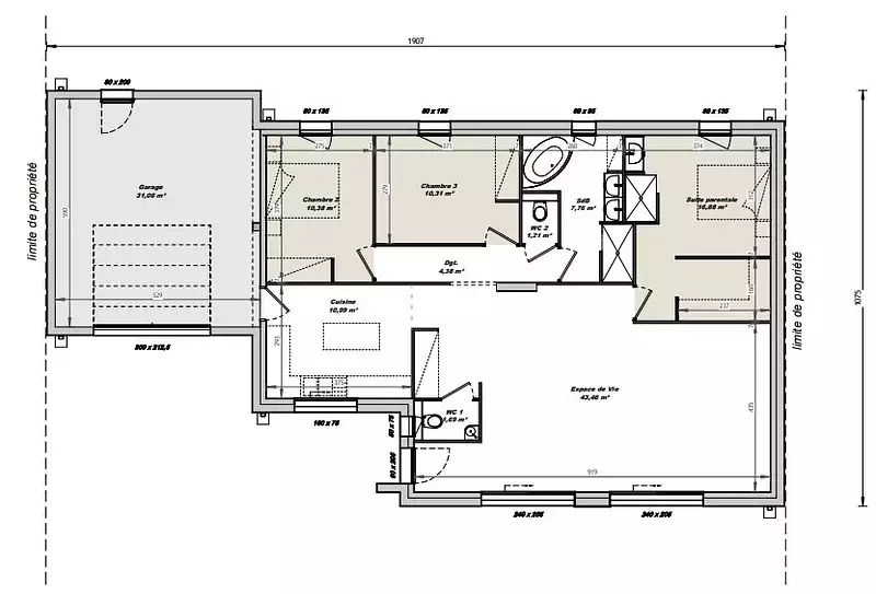 Proposée par MAISONS TRADILIGNES – 4 pièces - 3 chambres - terrain 453 m²