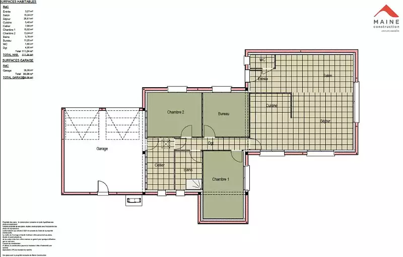 Proposée par MAINE CONSTRUCTION – 4 pièces - 3 chambres - terrain 555 m²