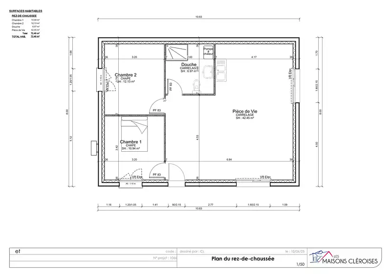 Proposée par MAISONS CLEROISES AGENCE DE QUINCAMPOIX – 3 pièces - 2 chambres - terrain 600 m²