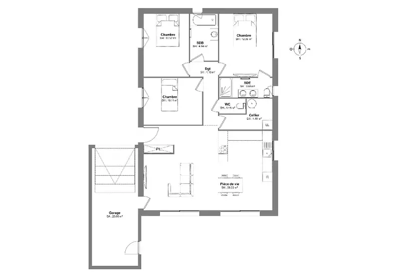 . (Plan personnalisable). Tous nos ouvrages sont réalisés sur-mesure en fonction de vos attentes et de nos échanges avec vous ainsi que dans le respect de la règlementation RE 2020. Ce projet comporte les garanties suivantes: Contrat de construction CCMI. Dommage/Ouvrage. RC Garantie décennale. Parfaite achèvement. Etude de sol G2. Prix et délais convenu. Garantie de livraison. Garantie financière Pour votre tranquillité nous nous occupons de toutes les formalités administratives.