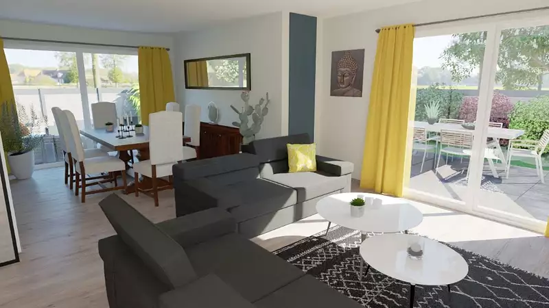 Terrain proposé par un partenaire foncier selon disponibilités et autorisation de publicité au prix de 37 920 €. Hors droit d'enregistrement et frais de notaire. Terrain + Maison proposés au prix de 231 080 € (Hors branchements et raccordements, papiers peints, peintures, revêtement de sol dans les chambres. Tarif modifiable sans préavis). Etiquette énergie : A. Différents modèles disponibles pour ce terrain. . HEXAOM Services est enregistré auprès de l'ORIAS en tant que Courtier en financement, Niveau 1, sous le numéro 14001345.