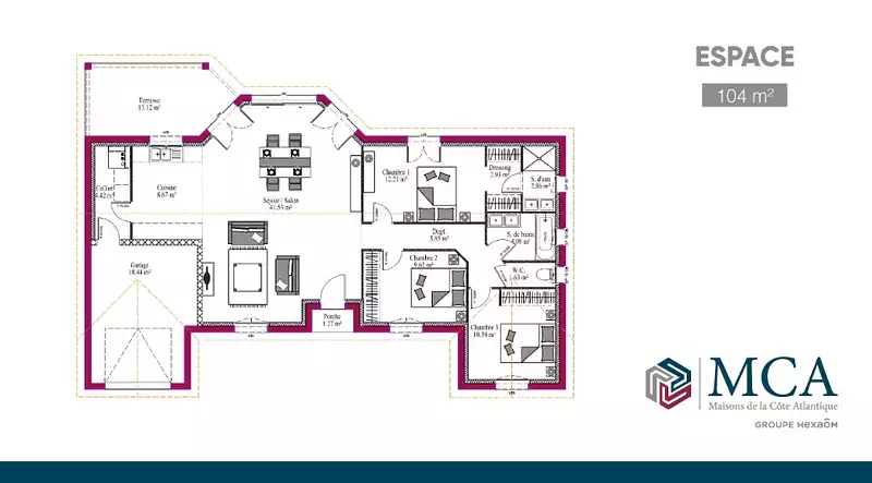 Proposée par MAISONS MCA - BERGERAC – 4 pièces - 3 chambres - terrain 625 m²