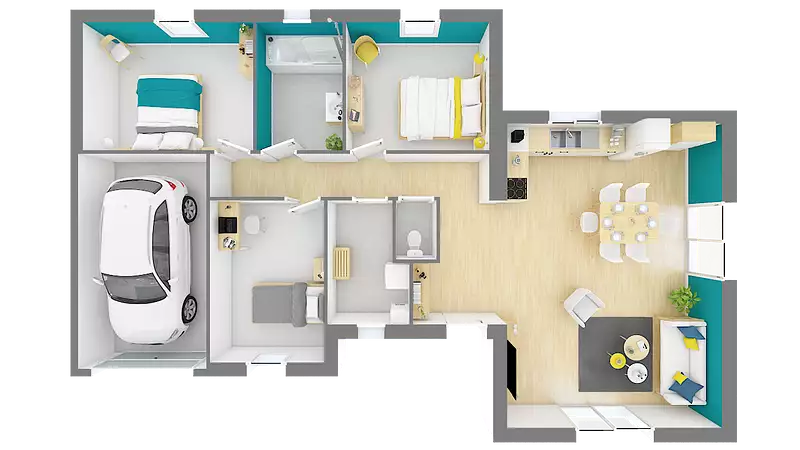 Nous vous proposons cette maison neuve, baptisée ""Dolcetto"", un modèle de résidence qui allie élégance et fonctionnalité sur une surface habitable de 93 m². Conçue pour s'adapter harmonieusement à des terrains de dimensions modestes, cette maison de plain-pied se distingue par son architecture intelligente, avec deux volumes décalés permettant une intégration optimale et un porche d'accueil chaleureux devant le hall.
