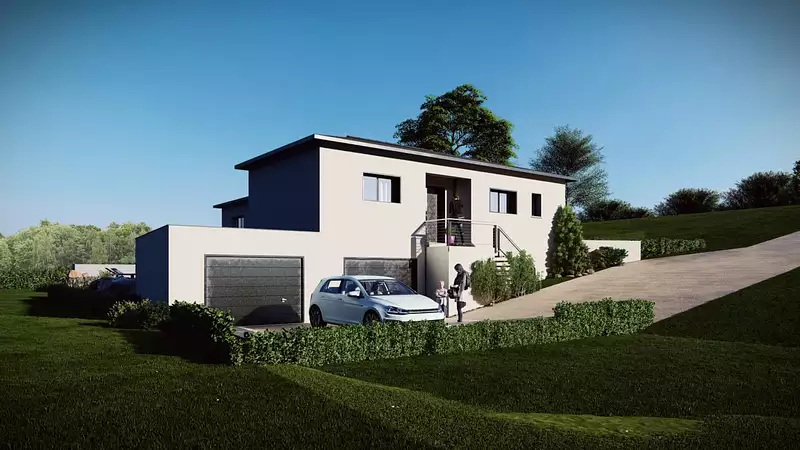 Maisons Arlogis Lyon Est vous propose des maisons 100% sur mesure. Visuel d'illustration. Le modèle est totalement adaptable à vos envies et besoins et personnalisable grâce à de nombreuses options de finition. Nous consulter pour plus d’informations. Le prix affiché comprend le coût du terrain et de la construction hors frais de notaire et taxes. Les annonces de terrains constructibles sont sélectionnées auprès de nos partenaires fonciers selon disponibilités et autorisation de publicité en vue de construire une maison neuve avec un Contrat de Construction de Maison Individuelle dans le cadre de la loi du 19/12/1990. Ces derniers sont soit des professionnels dûment habilités à la transaction immobilière, soit des particuliers. Les terrains sélectionnés sont disponibles à la date de la première parution de l’annonce. En aucun cas Maisons ARLOGIS ou ses collaborateurs ne sont propriétaires des terrains, ne jouent un rôle d’intermédiation ou de négociation sur la transaction et ne participent à la vente. Prix indiqués par nos partenaires fonciers.