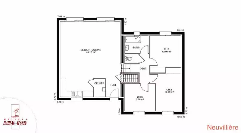 Sur ce terrain, nous vous proposons cette maison neuve, la Neuvillière, conçue par Babeau-Seguin, le constructeur offrant le meilleur rapport qualité/prix du marché. Librement inspirée de l’architecture Lorraine, la Neuvillière est une maison moderne à demi-niveau permettant de s'adapter à de nombreux terrains en pente ou escarpés.