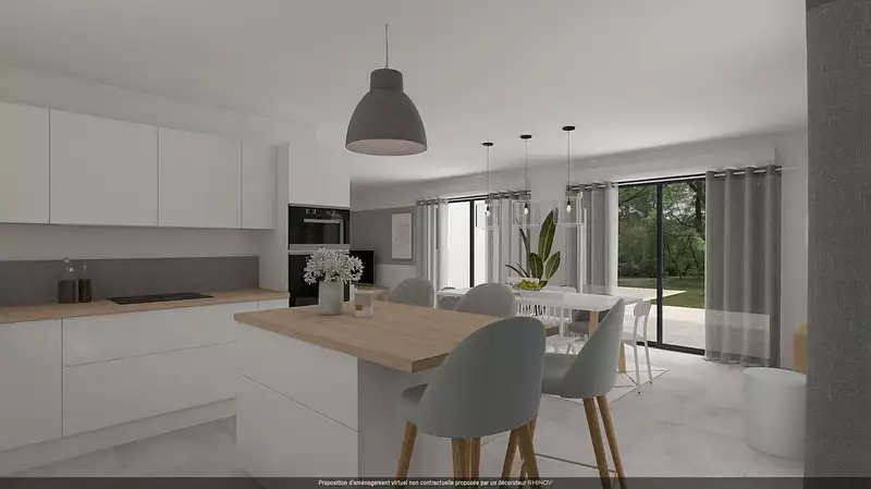Maison répondant aux dernières normes de construction RE 2020, comprenant séjour/cuisine avec ses grandes baies vitrées , 4 chambres dont une suite parentale avec dressing et salle d'eau, une salle de bains, un cellier, un wc, avec de nombreuses prestations de qualités.
