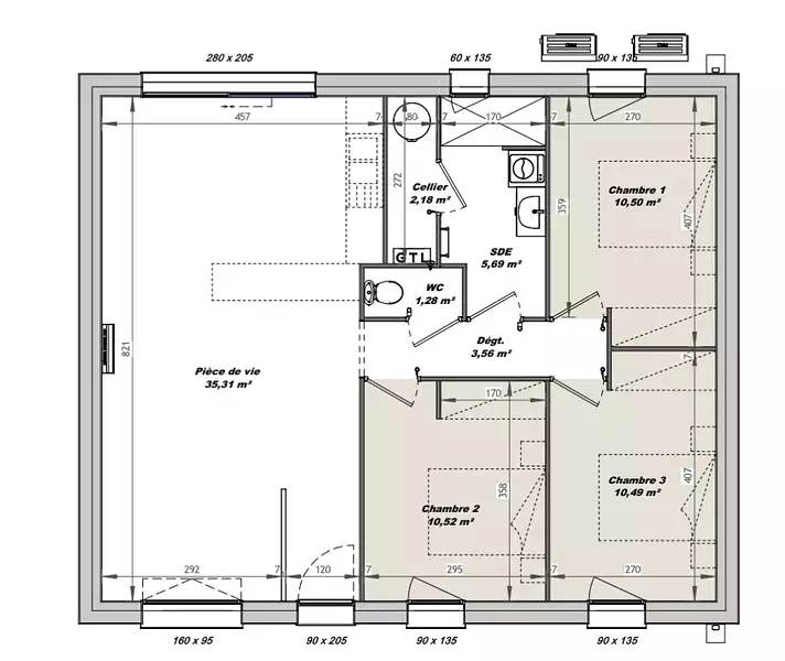 - Chambres : 3