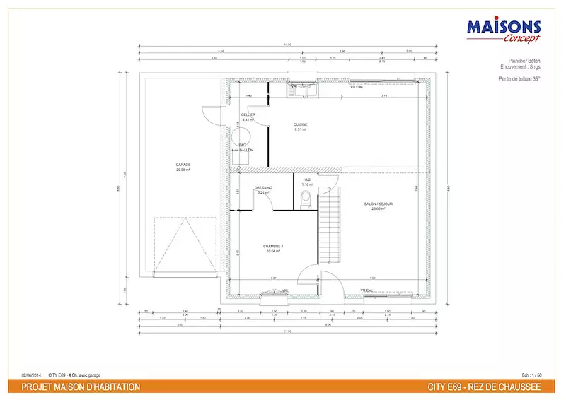 Proposée par MAISONS CONCEPT AGENCE DU MANS – 4 pièces - 3 chambres - terrain 420 m²