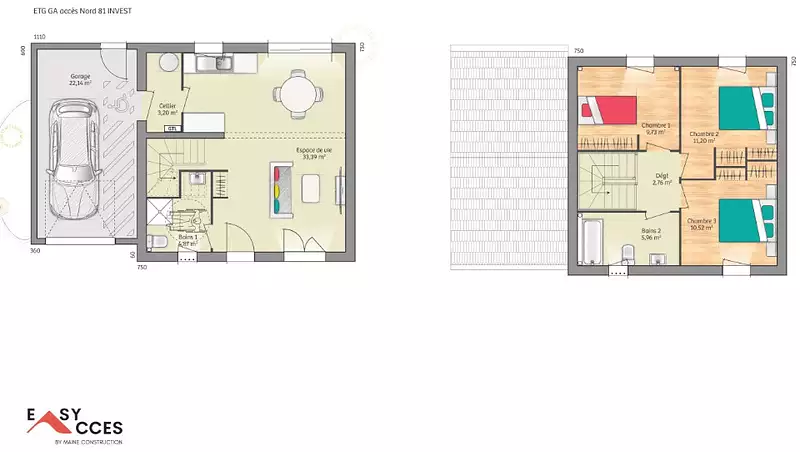 Proposée par MAINE CONSTRUCTION – 5 pièces - 3 chambres - terrain 361 m²