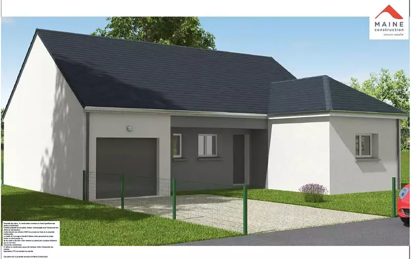 Terrain proposé par un partenaire foncier selon disponibilités et autorisation de publicité au prix de 70 000 €. Hors droit d'enregistrement et frais de notaire. Terrain + Maison proposés au prix de 189 000 € (Hors branchements et raccordements, papiers peints, peintures, revêtement de sol dans les chambres. Tarif modifiable sans préavis). Etiquette énergie : A. Différents modèles disponibles pour ce terrain. Assurances et garanties du constructeur (RC professionnelle, décennale, dommage ouvrage, garantie de remboursement de l'acompte, livraison à prix et délai convenu) : https://www.maine-construction.fr/mentions-legales/. HEXAOM Services est enregistré auprès de l'ORIAS en tant que Courtier en financement, Niveau 1, sous le numéro 14001345.