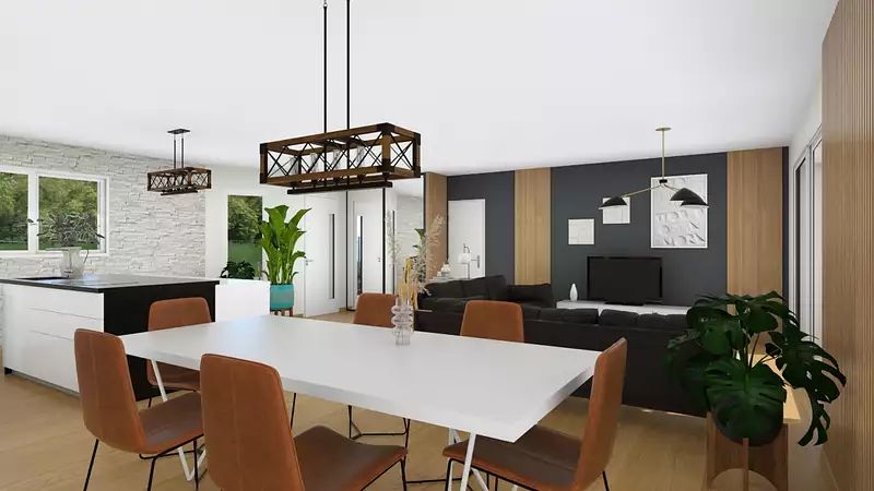Maisons Arlogis Lyon Est vous propose des maisons 100% sur mesure. Visuel d'illustration. Le modèle est totalement adaptable à vos envies et besoins et personnalisable grâce à de nombreuses options de finition. Nous consulter pour plus d’informations. Le prix affiché comprend le coût du terrain et de la construction hors frais de notaire et taxes. Les annonces de terrains constructibles sont sélectionnées auprès de nos partenaires fonciers selon disponibilités et autorisation de publicité en vue de construire une maison neuve avec un Contrat de Construction de Maison Individuelle dans le cadre de la loi du 19/12/1990. Ces derniers sont soit des professionnels dûment habilités à la transaction immobilière, soit des particuliers. Les terrains sélectionnés sont disponibles à la date de la première parution de l’annonce. En aucun cas Maisons ARLOGIS ou ses collaborateurs ne sont propriétaires des terrains, ne jouent un rôle d’intermédiation ou de négociation sur la transaction et ne participent à la vente. Prix indiqués par nos partenaires fonciers.