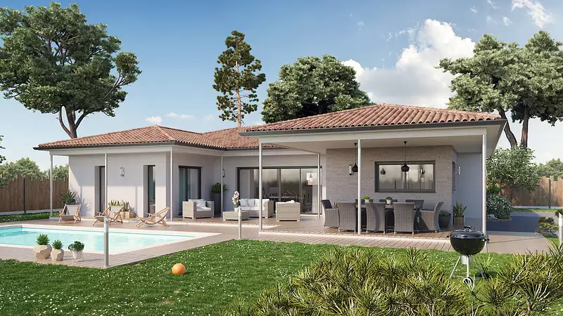 Très belle maison de plain-pied de 131 m² habitables avec garage. La vie s'organise autour d'un très bel espace de vie très lumineux grâce à ses ouvertures et sa très grande baie vitrée qui vous conduit sur une magnifique terrasse, accessible également depuis le coin cuisine. Pour l'espace nuit, 4 chambres dont 1 chambre parentale avec placards et salle d'eau privative, une salle de bains avec baignoire, double vasque et wc séparés. Pour vous assurer un confort de vie et conformément à la RE2025, nous avons choisi un mode de chauffage par PAC + plancher chauffant, volets roulants électriques. Prix hors peinture, décoration, revêtements de sol dans les chambres, cuisine équipée), frais de notaire, raccordements, dommage ouvrage. (Piscine non contractuelle, non comprise dans le prix).