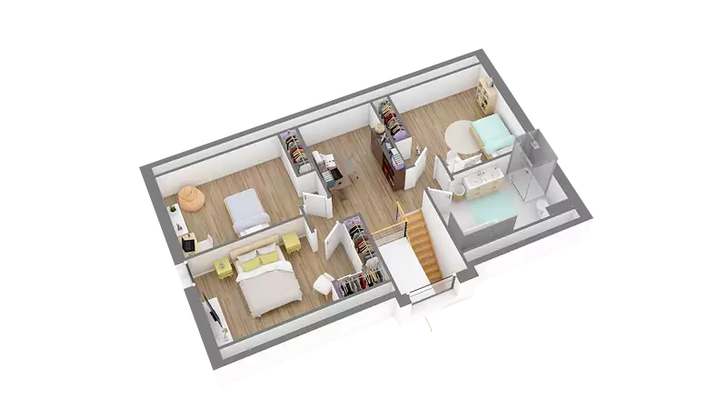 Pour la maison, nous créons vos plans sur-mesure en partant d'un modèle existant. Exemple avec cette maison à étage très moderne composée d'une grande pièce de vie et de 3 chambres de 107 m² habitable modifiable à 100% en fonction de vos besoins et de votre budget.
