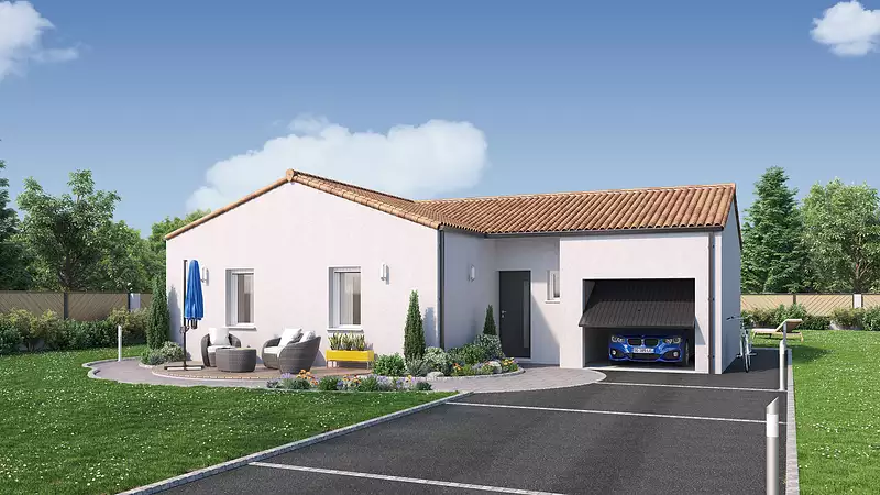 Compacte et fonctionnelle, cette maison de plain-pied vous propose un bel espace de vie lumineux, avec une grande baie vitrée donnant sur le jardin. Sa cuisine est ouverte sur le séjour et dispose d'un accès direct au cellier, et au garage intégré. Son espace nuit est composé de deux chambres avec rangements, d'une salle de bains et de wc séparés. Pour vous assurer un confort de vie et conformément à la RE2025, nous avons choisi un mode de chauffage par PAC + plancher chauffant, volets roulants électriques, Prix hors fourniture et pose : des appareils sanitaires (sauf système de chauffage et d'eau chaude sanitaire), du carrelage et de la faïence, des revêtements de sol dans les chambres. Hors décoration et aménagement intérieur et peinture. Hors raccordements, frais de notaire et dommage ouvrage.