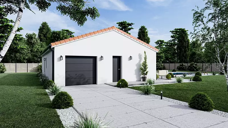 Cette maison est également équipée de deux salles de bains, dont une attenante à la suite parentale, offrant confort et praticité au quotidien. Le garage intégré, accessible depuis l'une des entrées de la maison, est un atout majeur pour les terrains à accès restreint, tout en préservant l'intimité des pièces de vie.