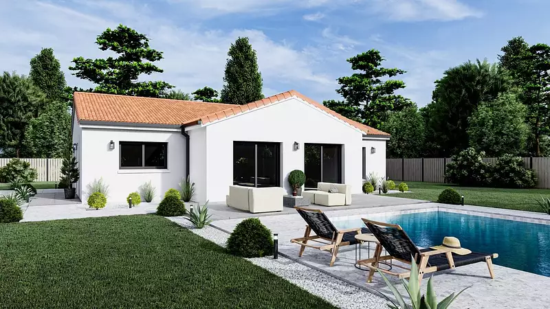 Nous vous proposons cette maison neuve, baptisée ""Chardonnière"", un modèle de plain-pied qui allie élégance et fonctionnalité, conçu pour répondre aux attentes des familles modernes. Avec une surface habitable de 106 m², cette demeure se distingue par son plan en T, offrant une organisation de l'espace optimale et une intégration harmonieuse dans son environnement.
