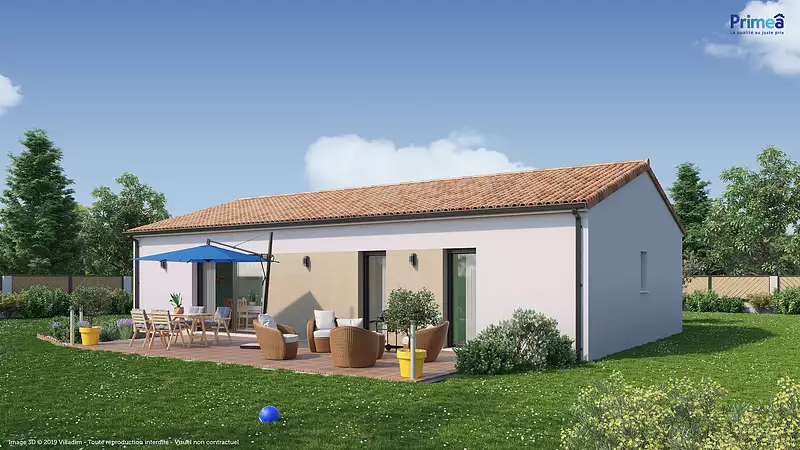 Maison de plain-pied de 100 m² habitables, familiale et lumineuse vous propose une vaste pièce de vie éclairée par sa grande baie vitrée avec cuisine ouverte et cellier, un dégagement dessert quatre chambres avec rangement, une salle de bains, wcPour vous assurer un confort de vie et conformèment à la RE2025, nous avons chosi un mode de chauffage par PAC + plancher chauffant, volets roulants électriques. Prix hors fourniture et pose : des appareils sanitaires (sauf système de chauffage et d'eau chaude sanitaire), du carrelage et de la faïence, des revêtements de sol dans les chambres. Hors décoration et aménagement intérieur et peinture. Hors raccordements, frais de notaire et dommage ouvrage.