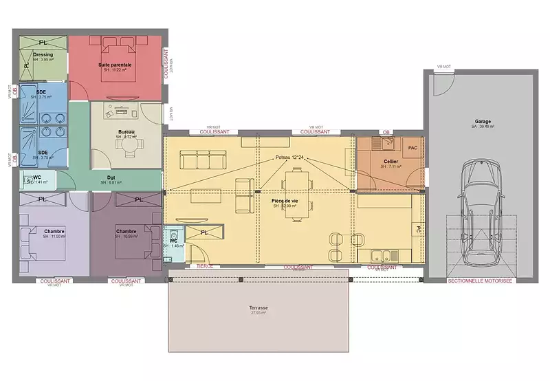 A saisir. Au centre d'un triangle Chantonnay, Les Herbiers et La Roche Sur Yon, profitez de cette belle opportunité avec ce terrain de 446 m², proche de toutes commodités, idéalement exposé et entièrement viabilisé, pour réaliser ensemble votre projet de construction ?? Maison Contemporaine à Construire – Ossature Bois – 123 m² Habitables ?? Projet neuf – Personnalisable selon vos envies Vous rêvez d’une maison moderne, éco-performante et confortable ? Découvrez ce projet de construction d’une maison contemporaine en ossature bois, à l’architecture élégante mêlant toiture bac acier et toit plat, offrant une surface habitable de 123 m², pensée pour le bien-être au quotidien. ?? Composition de la maison : • Pièce de vie lumineuse de 53 m² avec grandes baies vitrées, exposée pour un maximum de lumière naturelle • Cuisine ouverte sur le séjour, idéale pour la convivialité • 3 chambres, dont une suite parentale avec salle d’eau privative et dressing • 2 salles de bain modernes et fonctionnelles • 1 bureau, parfait pour le télétravail ou une salle de jeux • Cellier attenant à la cuisine, pour un rangement optimal • Grand garage de 39,51 m² avec accès direct à la maison ?? Caractéristiques : • Construction en ossature bois : performance thermique, confort et respect de l’environnement • Design contemporain avec finitions soignées • Possibilité de personnaliser les plans et les aménagements intérieurs ?? Idéal pour : Une famille en quête d’un cadre de vie moderne, durable et chaleureux, ou pour un projet de résidence principale dans un environnement calme et naturel. ________________________________________ ?? Contactez-nous dès maintenant pour plus d’informations ou pour une étude personnalisée de votre projet !