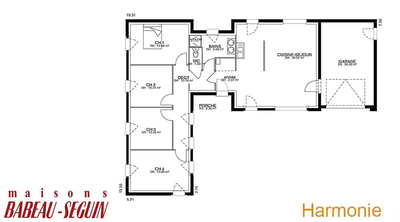 Sur ce terrain, nous vous proposons cette maison neuve, Harmonie, conçue par Babeau-Seguin, constructeur offrant le meilleur rapport qualité/prix du marché. Avec une surface de 109 m², cette maison contemporaine en L est un véritable coup de cœur pour les amoureux de modernité.
